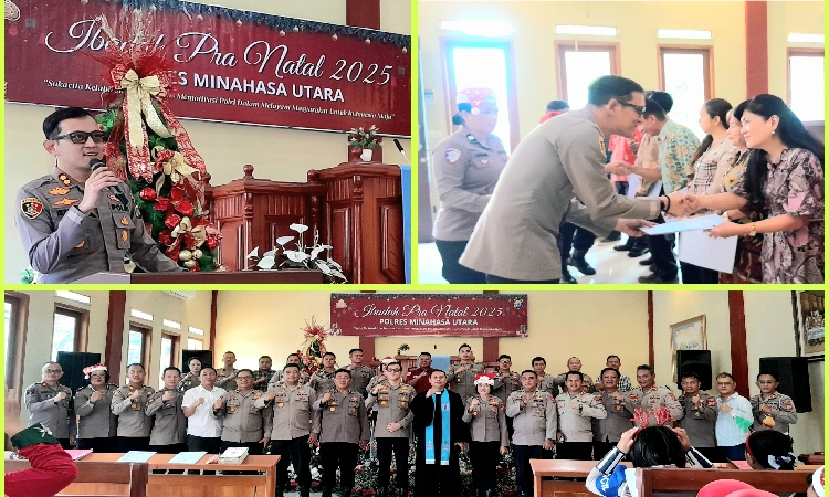 Minut _ www.radiotrendyfm.com – Keluarga besar Polisi Resort (Polres) Kab. Minahasa Utara (Minut), gelar ibadah PraNatal dalam menyambut Kelahiran sang Juru Selamat Yesus Kristus, pada hari Kamis, 19 Desember 2025, bertempat di Ruma Do’a Amaeda di samping kantor Polres Minut Desa Tumaluntung Kecamatan Kauditan.